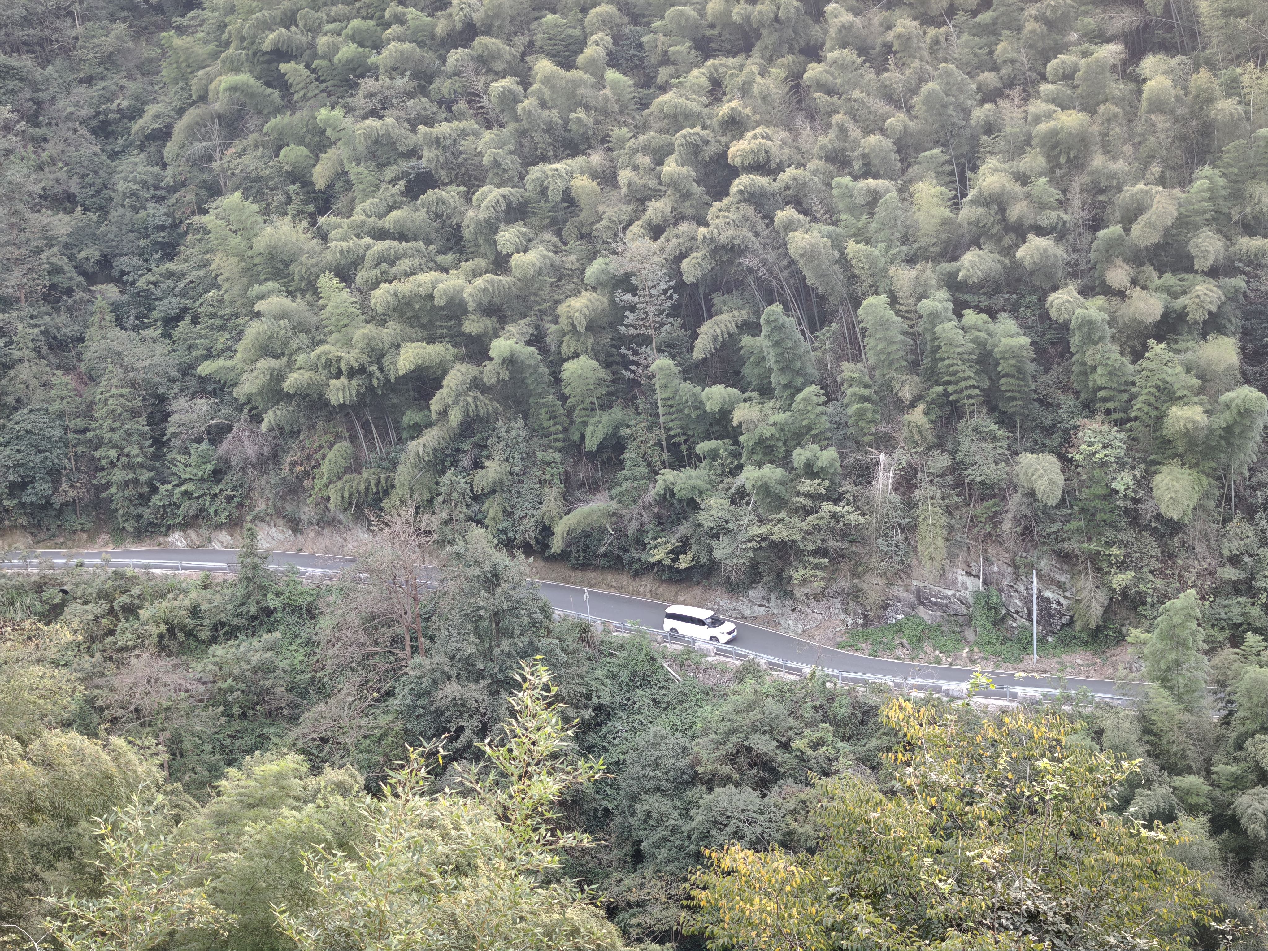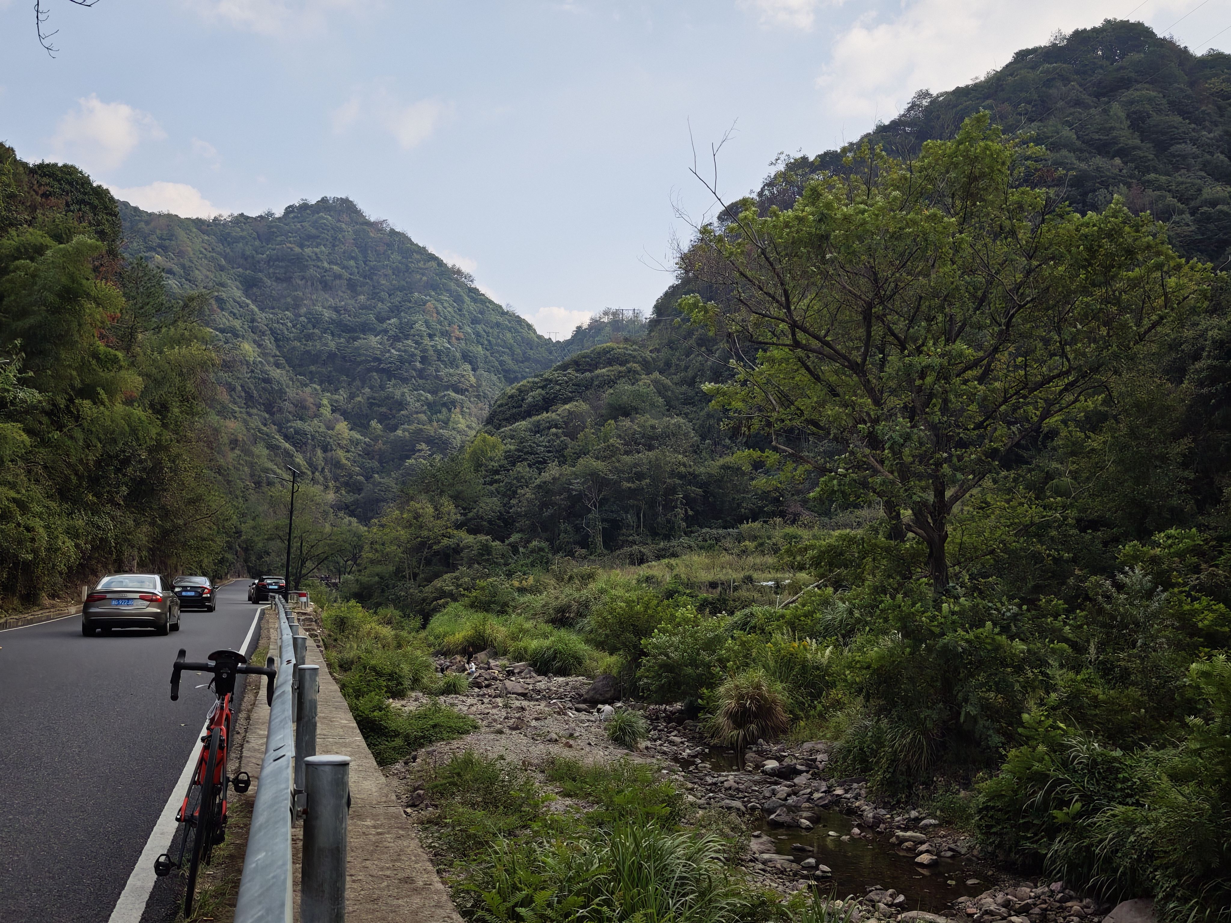 摇车进山后,树影与山峰交织成天然的屏障,感受不到一点热,只剩下逆向的风和时不时的鸟叫声。