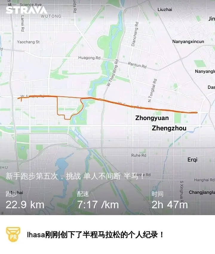 今天我,昨天晚上忙着搬家没有跑步,处于内心的愧疚,我决定今天晚上把昨天的补回来,在跑之前我还不知道半马是什么意思